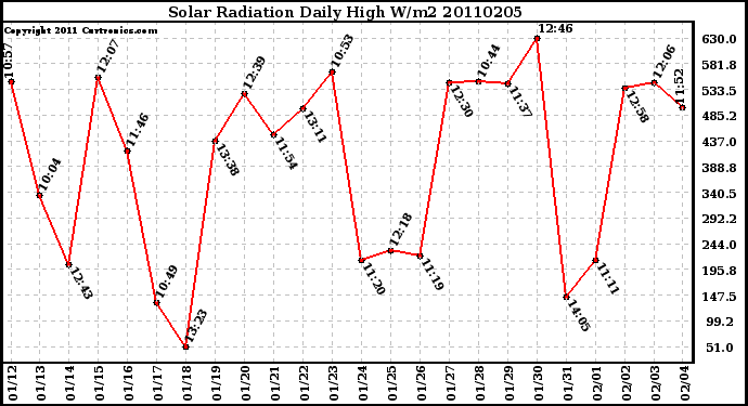 Milwaukee Weather -- 20110205 Solar Radiation Daily High W/m2 -- From curtronics.com by Curt Blank