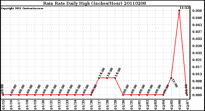 Milwaukee Weather -- 20110208 Rain Rate Daily High (Inches/Hour) -- From curtronics.com by Curt Blank