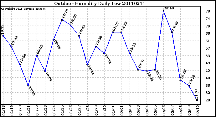 Milwaukee Weather -- 20110211 Outdoor Humidity Daily Low -- From curtronics.com by Curt Blank