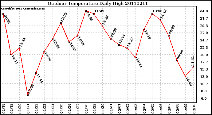 Milwaukee Weather -- 20110211 Outdoor Temperature Daily High -- From curtronics.com by Curt Blank