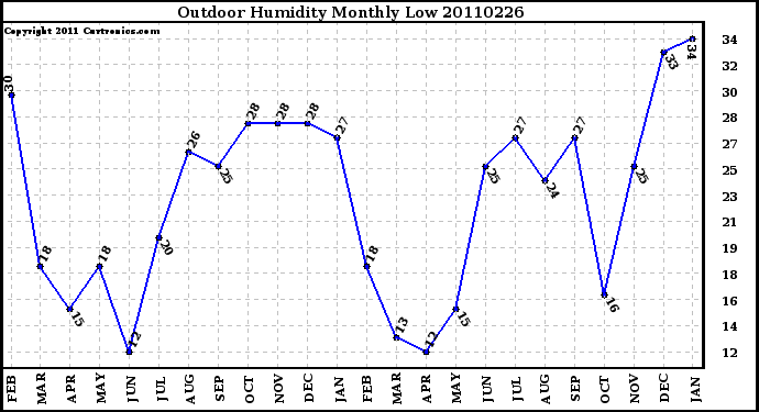 Milwaukee Weather -- 20110226 Outdoor Humidity Monthly Low -- From curtronics.com by Curt Blank