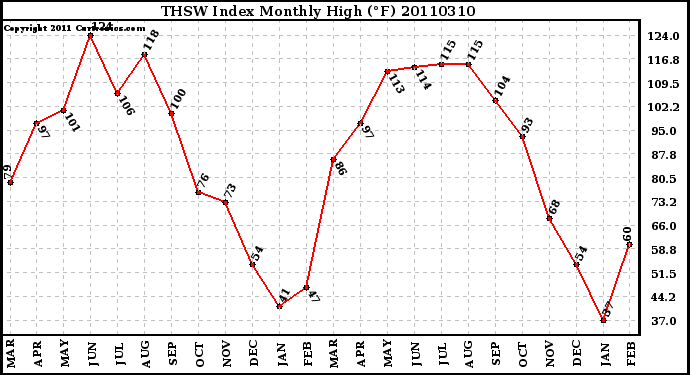 20110310 THSW Index Monthly High (°F)