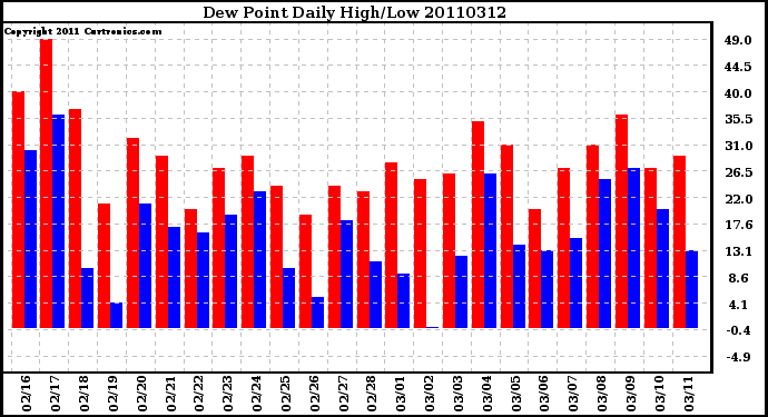 Milwaukee Weather -- 20110312 Dew Point Daily High/Low -- From curtronics.com by Curt Blank
