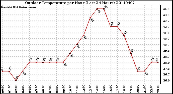 Milwaukee Weather -- 20110407 Outdoor Temperature per Hour (Last 24 Hours) -- From curtronics.com by Curt Blank