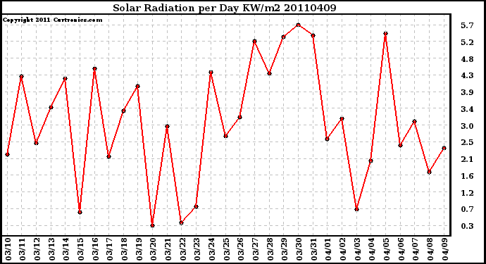 20110409 Solar Radiation per Day KW/m2