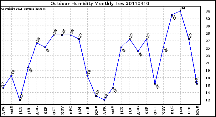 Milwaukee Weather -- 20110410 Outdoor Humidity Monthly Low -- From curtronics.com by Curt Blank