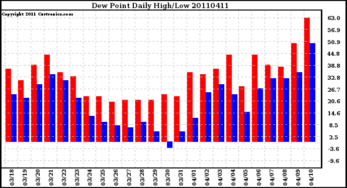 Milwaukee Weather -- 20110411 Dew Point Daily High/Low -- From curtronics.com by Curt Blank