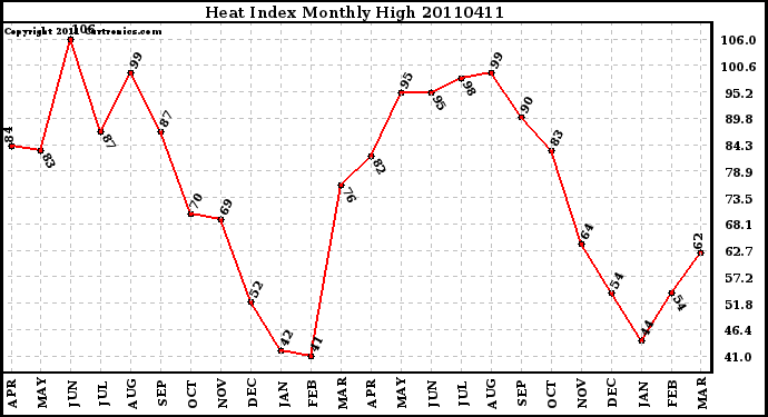 Milwaukee Weather -- 20110411 Heat Index Monthly High -- From curtronics.com by Curt Blank