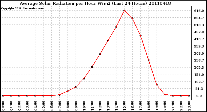 Milwaukee Weather -- 20110418 Average Solar Radiation per Hour W/m2 (Last 24 Hours) -- From curtronics.com by Curt Blank