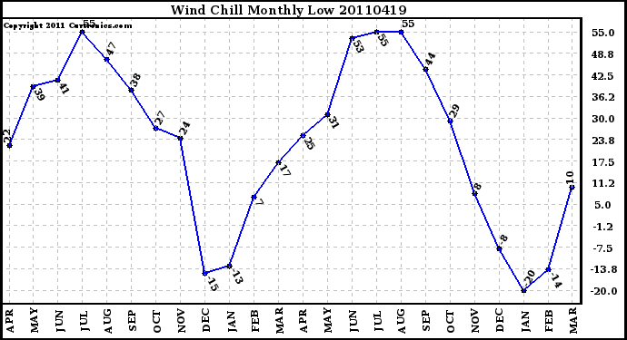 Milwaukee Weather -- 20110419 Wind Chill Monthly Low -- From curtronics.com by Curt Blank
