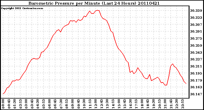 Milwaukee Weather -- 20110421 Barometric Pressure per Minute (Last 24 Hours) -- From curtronics.com by Curt Blank