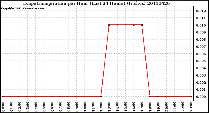 Milwaukee Weather -- 20110426 Evapotranspiration per Hour (Last 24 Hours) (Inches) -- From curtronics.com by Curt Blank