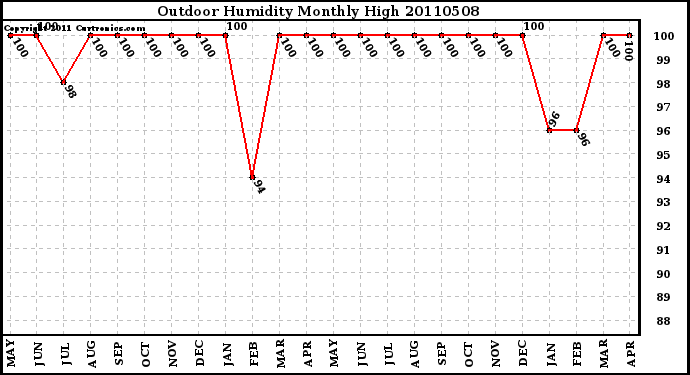 Milwaukee Weather -- 20110508 Outdoor Humidity Monthly High -- From curtronics.com by Curt Blank