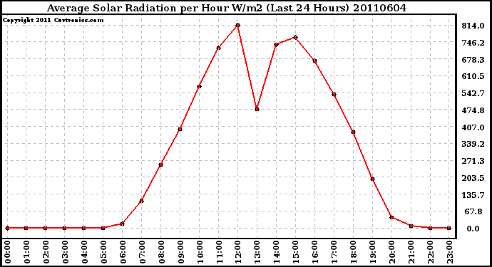 Milwaukee Weather -- 20110604 Average Solar Radiation per Hour W/m2 (Last 24 Hours) -- From curtronics.com by Curt Blank