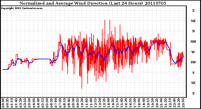 20110705 Normalized and Average Wind Direction (Last 24 Hours)