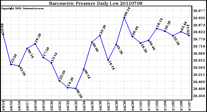 Milwaukee Weather -- 20110708 Barometric Pressure Daily Low -- From curtronics.com by Curt Blank