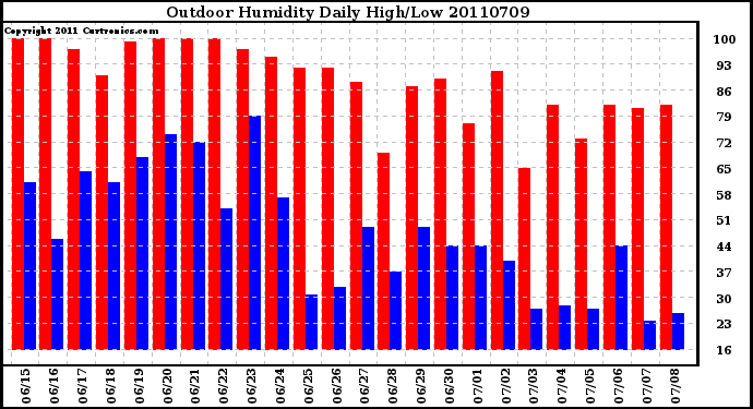 Milwaukee Weather -- 20110709 Outdoor Humidity Daily High/Low -- From curtronics.com by Curt Blank
