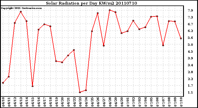 Milwaukee Weather -- 20110710 Solar Radiation per Day KW/m2 -- From curtronics.com by Curt Blank