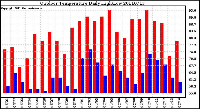 Milwaukee Weather -- 20110715 Outdoor Temperature Daily High/Low -- From curtronics.com by Curt Blank