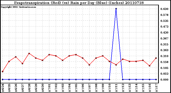 20110718 Evapotranspiration (Red) (vs) Rain per Day (Blue) (Inches)