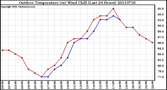Milwaukee Weather -- 20110718 Outdoor Temperature (vs) Wind Chill (Last 24 Hours) -- From curtronics.com by Curt Blank