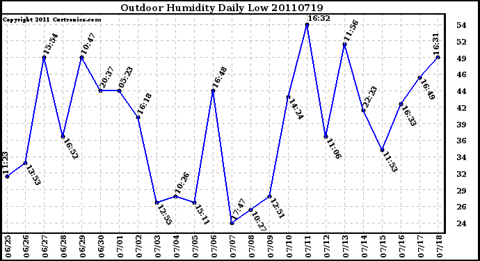 Milwaukee Weather -- 20110719 Outdoor Humidity Daily Low -- From curtronics.com by Curt Blank