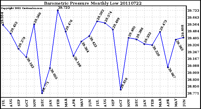 20110722 Barometric Pressure Monthly Low