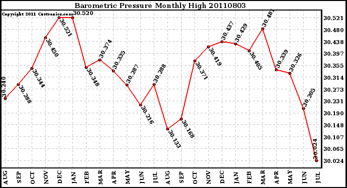 20110803 Barometric Pressure Monthly High
