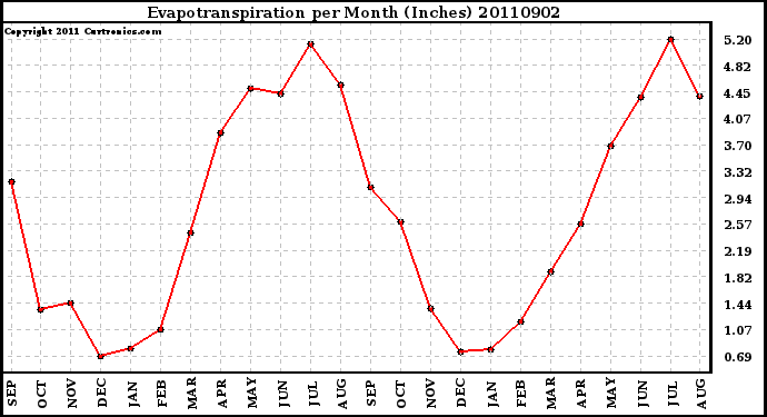 Milwaukee Weather -- 20110902 Evapotranspiration per Month (Inches) -- From curtronics.com by Curt Blank