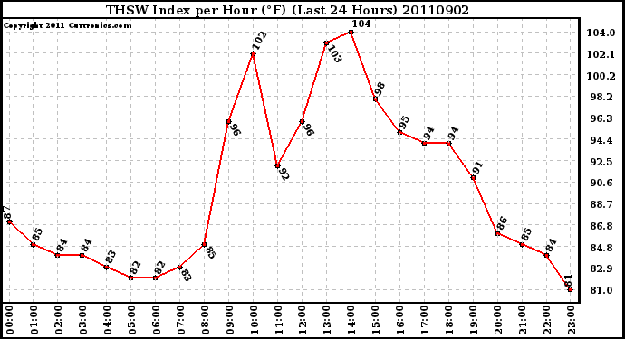 20110902 THSW Index per Hour (°F) (Last 24 Hours)