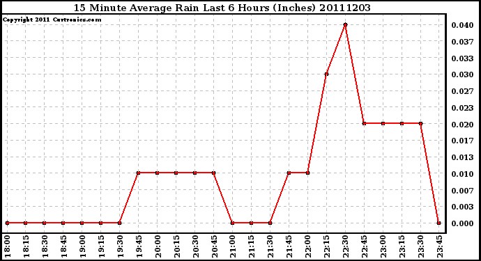 Milwaukee Weather -- 20111203 15 Minute Average Rain Last 6 Hours (Inches) -- From curtronics.com by Curt Blank
