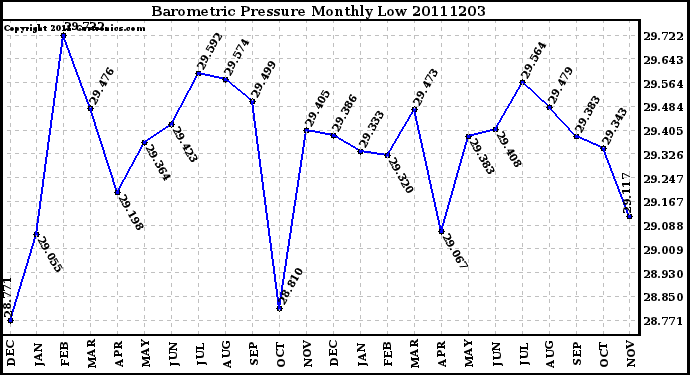 Milwaukee Weather -- 20111203 Barometric Pressure Monthly Low -- From curtronics.com by Curt Blank