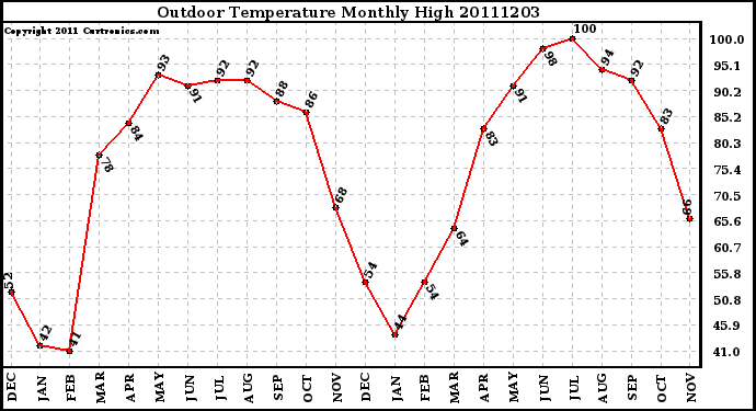Milwaukee Weather -- 20111203 Outdoor Temperature Monthly High -- From curtronics.com by Curt Blank