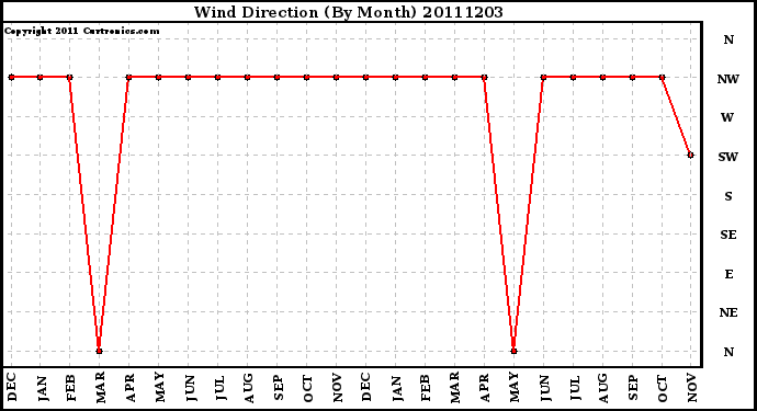 Milwaukee Weather -- 20111203 Wind Direction (By Month) -- From curtronics.com by Curt Blank