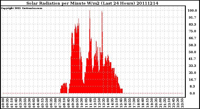 Milwaukee Weather -- 20111214 Solar Radiation per Minute W/m2 (Last 24 Hours) -- From curtronics.com by Curt Blank