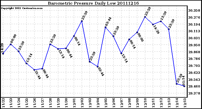 Milwaukee Weather -- 20111216 Barometric Pressure Daily Low -- From curtronics.com by Curt Blank