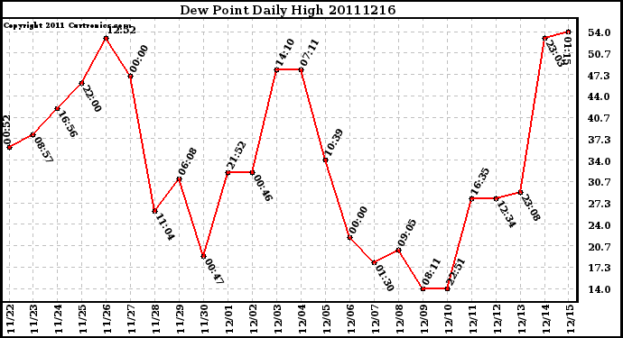 Milwaukee Weather -- 20111216 Dew Point Daily High -- From curtronics.com by Curt Blank