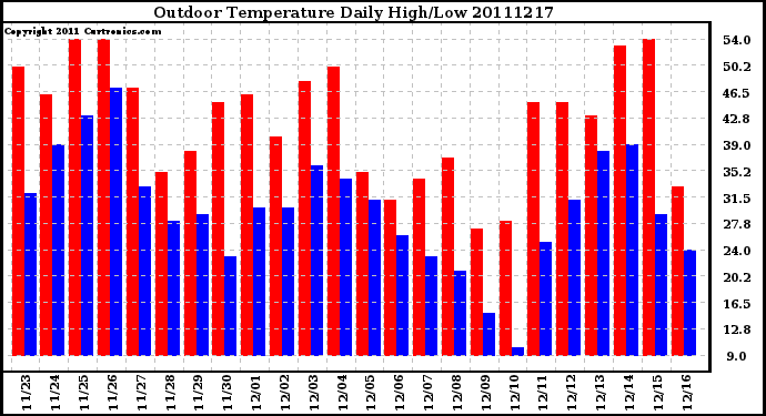 Milwaukee Weather -- 20111217 Outdoor Temperature Daily High/Low -- From curtronics.com by Curt Blank