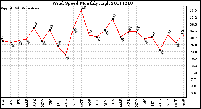 Milwaukee Weather -- 20111218 Wind Speed Monthly High -- From curtronics.com by Curt Blank