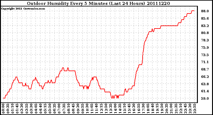 Milwaukee Weather -- 20111220 Outdoor Humidity Every 5 Minutes (Last 24 Hours) -- From curtronics.com by Curt Blank