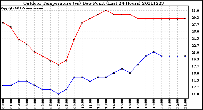 Milwaukee Weather -- 20111223 Outdoor Temperature (vs) Dew Point (Last 24 Hours) -- From curtronics.com by Curt Blank