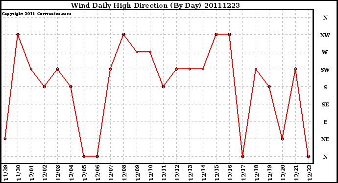 Milwaukee Weather -- 20111223 Wind Daily High Direction (By Day) -- From curtronics.com by Curt Blank
