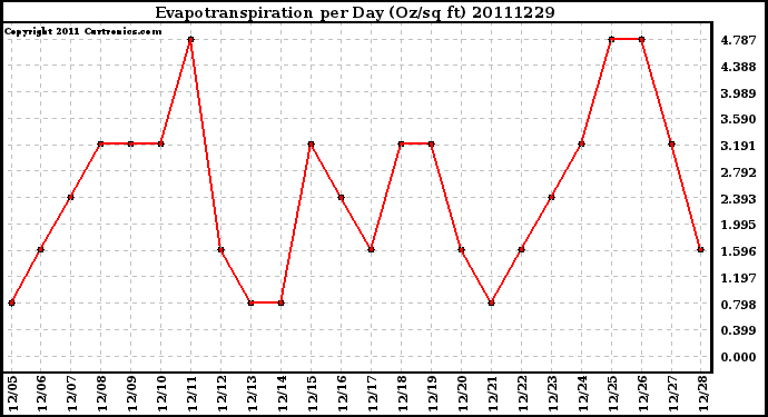 Milwaukee Weather -- 20111229 Evapotranspiration per Day (Oz/sq ft) -- From curtronics.com by Curt Blank