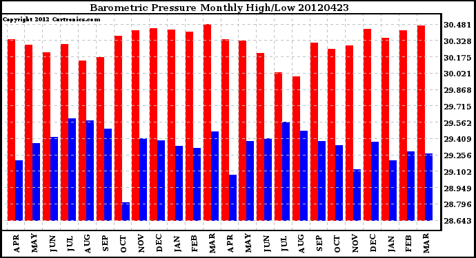 Milwaukee Weather -- 20120423 Barometric Pressure