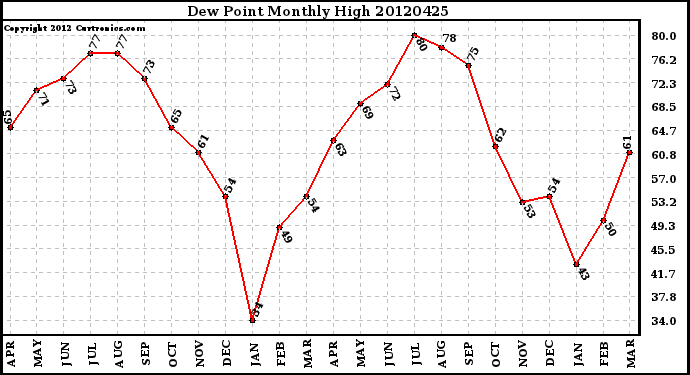 Milwaukee Weather -- 20120425 Dew Point