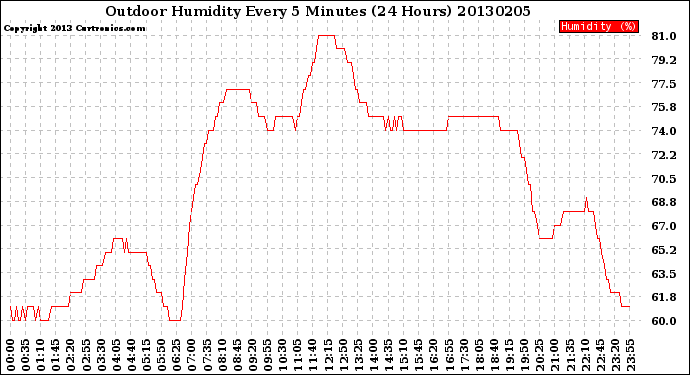Milwaukee Weather -- 20130205 Outdoor Humidity