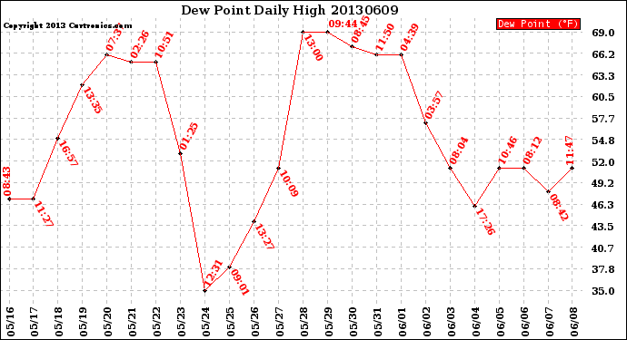 Milwaukee Weather -- 20130609 Dew Point