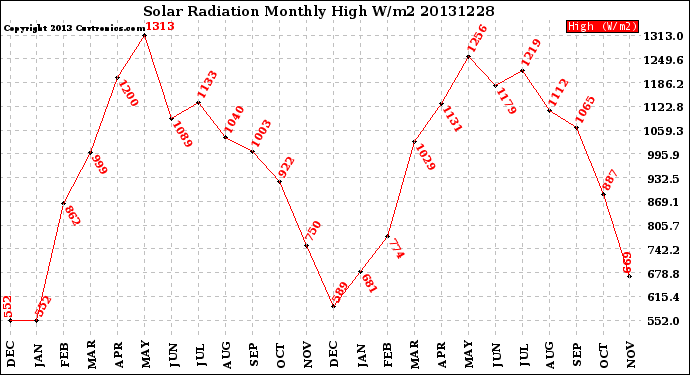 Monthly High W/m2 -- From curtronics.com by Curt Blank