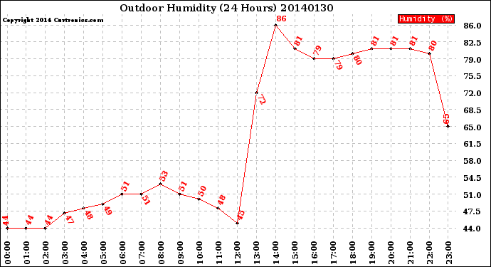 Milwaukee Weather -- 20140130 Outdoor Humidity
