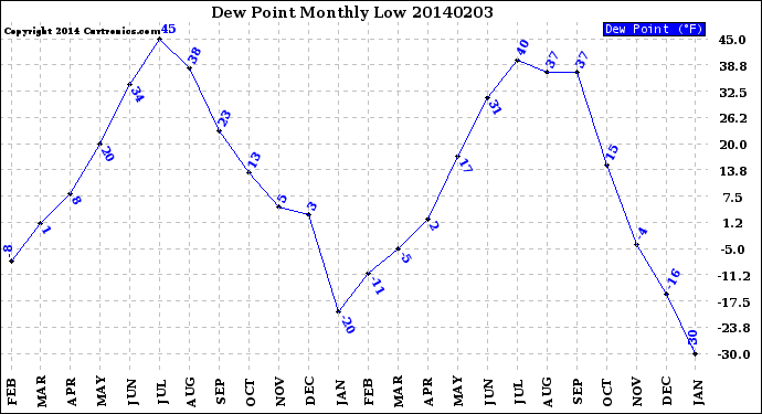 Milwaukee Weather -- 20140203 Dew Point